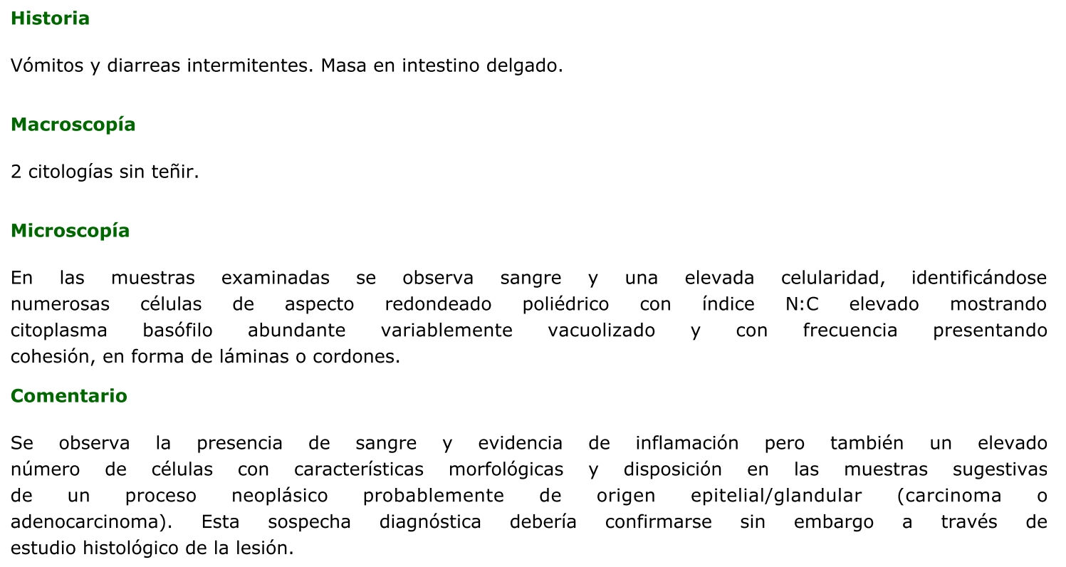 Pérdida de peso. Diarreas crónicas que no han respondido a terapia médica ni dietas indicadas por su Veterinario. Algún episodio de vómitos reciente (comida sin digerir). Apatía.