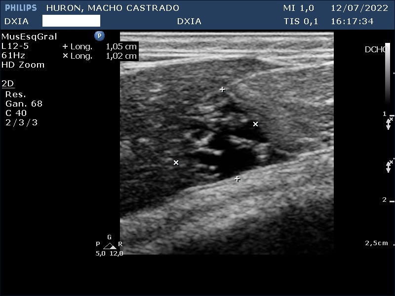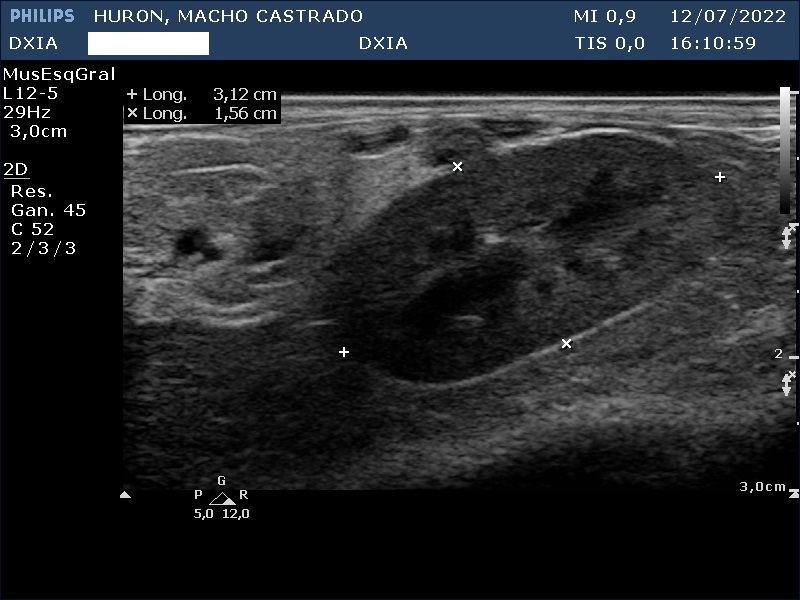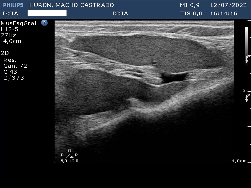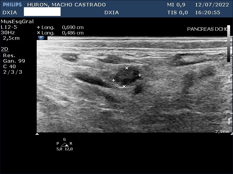 Presenta convulsiones así como hipoglucemias con picos de hiperglucemia por lo que su veterinario decide realizar un estudio de ecografía abdominal.