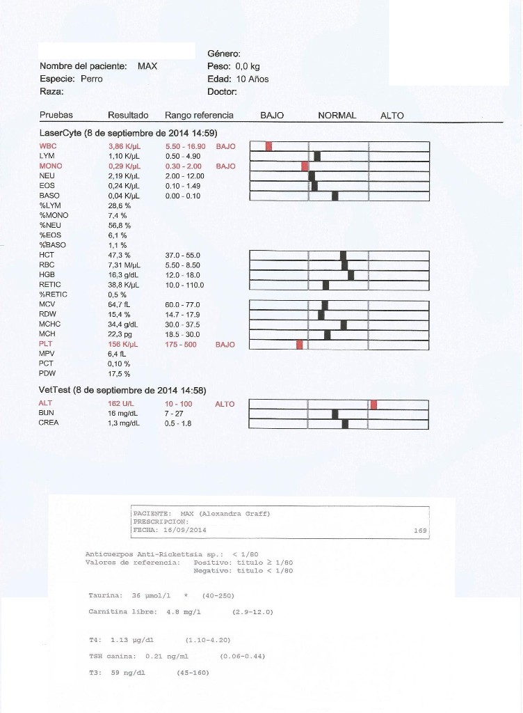 El paciente presenta actividad normal, está contento y la propietaria comenta que vuelve a querer salir de paseo y que está juguetón.
